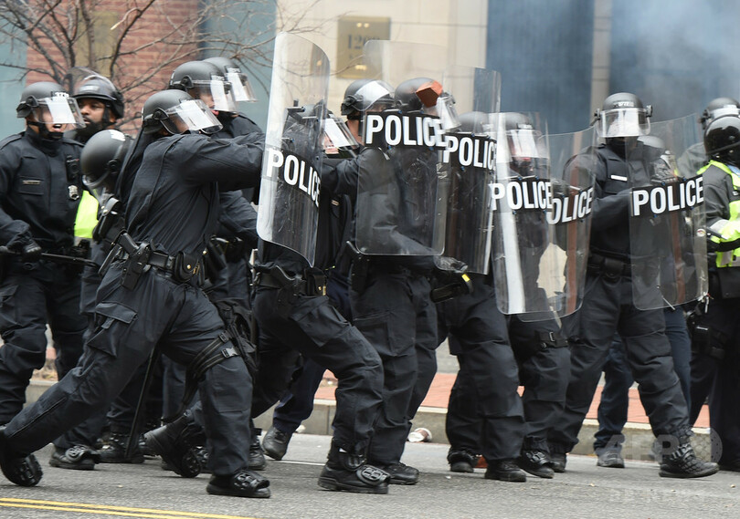 【1月21日 AFP】(写真追加)ドナルド・トランプ(Donald Trump)米新大統領の就任宣誓式が行われた首都ワシントン(Washington D.C.)で20日、新政権に抗議するデモ隊の一部が暴徒化し、警官隊と衝突した。