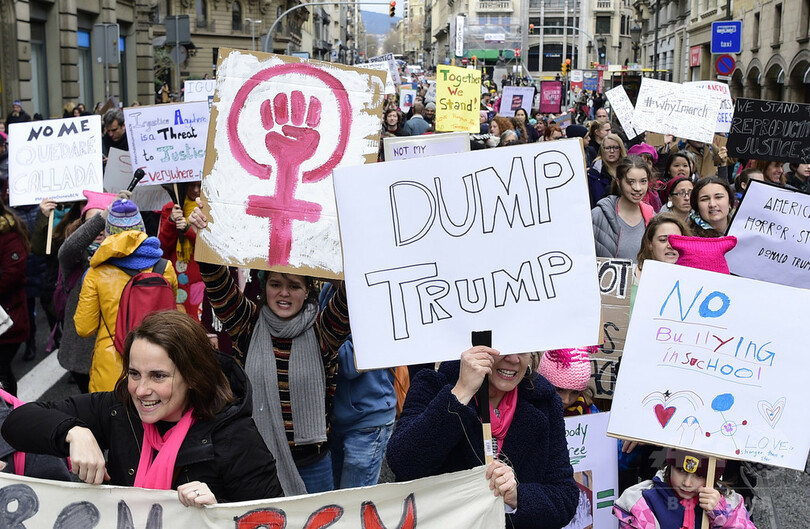 反トランプデモはスペインのバルセロナ(Barcelona)、イタリアの首都ローマ(Rome)、オランダの首都アムステルダム(Amsterdam)、スイスのジュネーブ(Geneva)、ハンガリーの首都ブダペスト(Budapest)、ドイツの首都ベルリン(Berlin)、チェコの首都プラハ(Prague)など欧州各地に加え、オーストラリアやニュージーランドでも行われた。(c)AFP