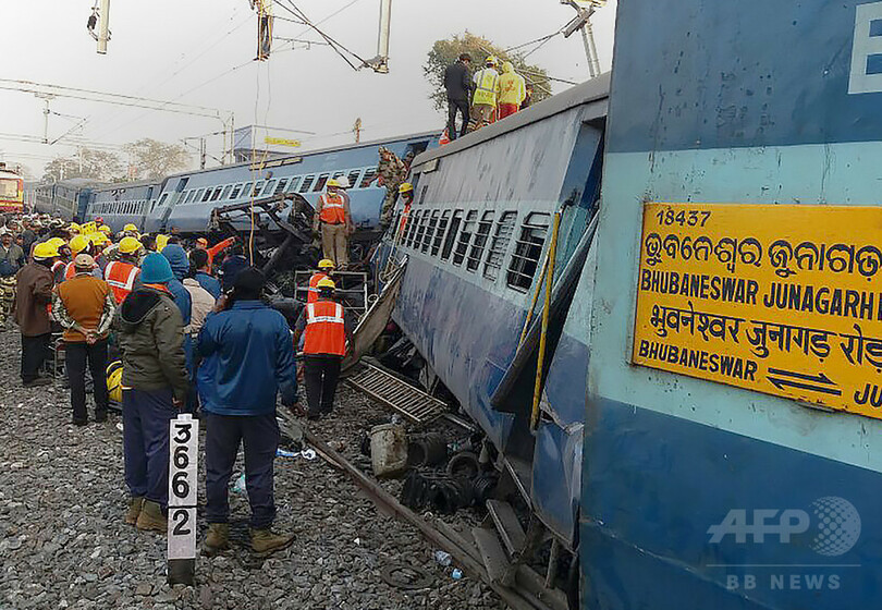 【1月22日 AFP】(更新、写真追加)インド南東部で21日夜に発生した急行列車の脱線事故の死者は、23日未明までに39人になった。生存者の救助活動は難航している。