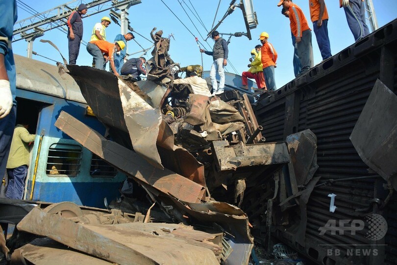 【1月22日 AFP】(更新、写真追加)インド南東部で21日夜に発生した急行列車の脱線事故の死者は、23日未明までに39人になった。生存者の救助活動は難航している。