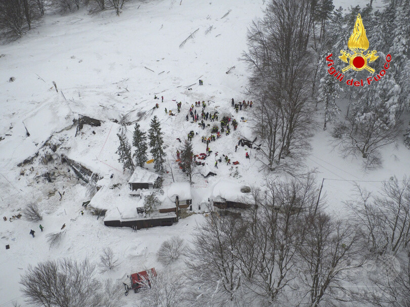 18日に発生した雪崩の直撃を受けたのは、同県ファリンドラ(Farindola)村近郊にあるホテル・リゴピアノ(Hotel Rigopiano)。依然として23人が行方不明となっており、凍える寒さの中、がれきに埋もれた人たちの生存を示す兆候が最後に確認されてから48時間以上が経過している。