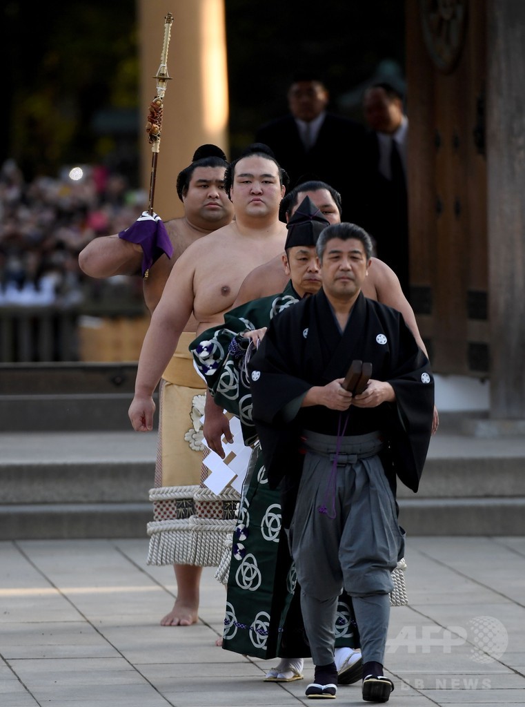 【1月28日 AFP】新横綱の稀勢の里(Kisenosato)が27日、明治神宮(Meiji Shrine)で奉納土俵入りを行った。