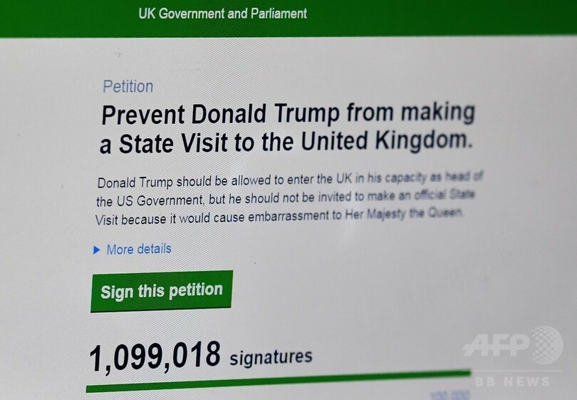 英議会のサイトに掲載された請願には「ドナルド・トランプ氏が米政府首脳という立場で英国に入国することは許可するべきだが、公式訪問を招請することは女王陛下を当惑させるものであり行うべきではない」とあり、さらに「ドナルド・トランプ氏の女性蔑視と下品さには定評があり、英女王あるいは皇太子が迎える相手として不適格である」と書かれている。