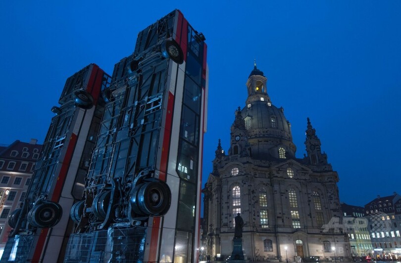 【2月7日 AFP】ドイツ東部ドレスデン(Dresden)にある聖母教会(Church of Our Lady)の前に6日、3台のバスが地面を突き刺すようにして設置された。シリア人アーティストのマナフ・ハルボウニ(Manaf Halbouni)さんによる「モニュメント(Monument)」と題された作品だ。