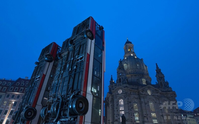 【2月7日 AFP】ドイツ東部ドレスデン(Dresden)にある聖母教会(Church of Our Lady)の前に6日、3台のバスが地面を突き刺すようにして設置された。シリア人アーティストのマナフ・ハルボウニ(Manaf Halbouni)さんによる「モニュメント(Monument)」と題された作品だ。