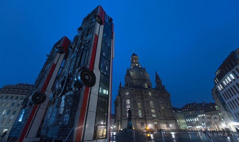 【2月7日 AFP】ドイツ東部ドレスデン(Dresden)にある聖母教会(Church of Our Lady)の前に6日、3台のバスが地面を突き刺すようにして設置された。シリア人アーティストのマナフ・ハルボウニ(Manaf Halbouni)さんによる「モニュメント(Monument)」と題された作品だ。