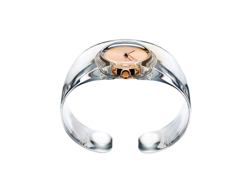“O”シリーズのコンセプトは、「水のかたち。透明な時を刻む時計」。透明なベルトの中にダイヤルが浮かんでいるようなモダンなデザインで、バングルタイプの腕時計。デザイナーの吉岡はプロダクト、空間、パッケージ、建築など幅広い領域で活躍し、アメリカ「Newsweek」誌日本語版にて“世界が尊敬する日本人100人”にも選出。国内外で高く評価され、作品はニューヨーク近代美術館(MoMA)やポンピドゥーセンター(Pompidou Centre)などにも永久保存されている。
