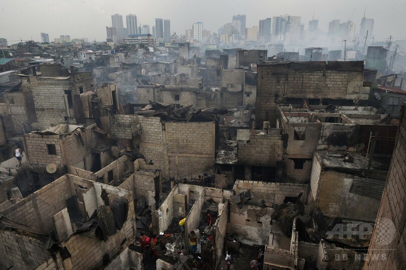 フィリピン首都のスラム街で火災、1万5000人がホームレスに