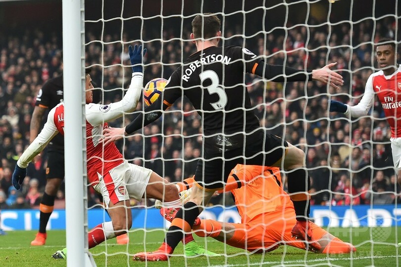 【2月12日 AFP】16-17イングランド・プレミアリーグは11日、第25節の試合が行われ、アーセナル(Arsenal)はアレクシス・サンチェス(Alexis Sanchez)が手で押し込んだゴールを含む2得点を記録し、ハル・シティ(Hull City)を2-0で退けて3試合ぶりの白星を手に入れた。