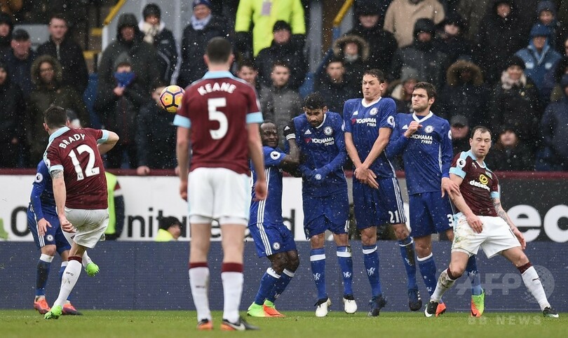 【2月13日 AFP】16-17イングランド・プレミアリーグは12日、第25節の試合が行われ、首位チェルシー(Chelsea)は、バーンリーFC(Burnley FC)の新加入選手ロビー・ブレイディ(Robbie Brady)に直接FKを決められ、1-1で引き分けた。