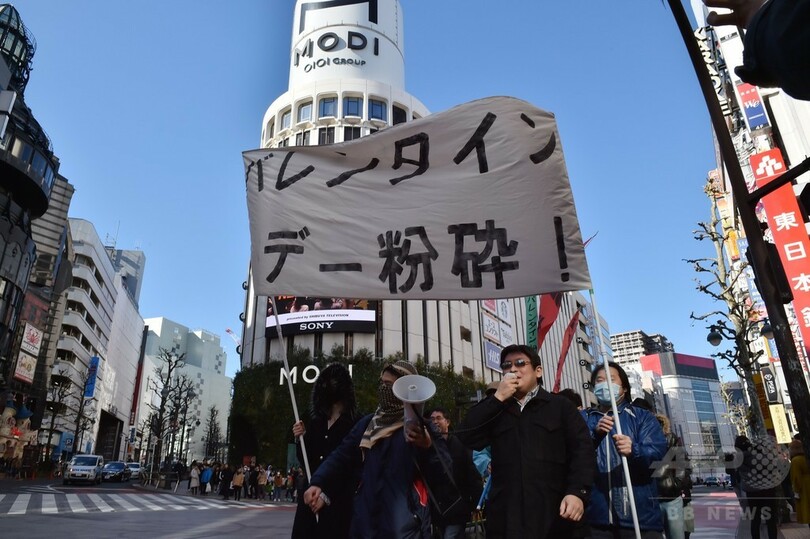 東京・渋谷でも先日、異性に人気のない人たちの連帯を呼び掛ける団体「革命的非モテ同盟(革非同、Kakuhido)」のメンバーらが、「バレンタインデー粉砕!」の横断幕を掲げ、「街中でイチャつくのはテロ行為」などのシュプレヒコールを上げながら抗議デモを行った。