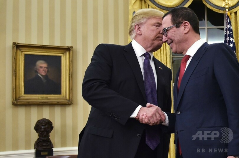 トランプ大統領はムニューシン氏の承認を遅らせたとして民主党を批判している。(c)AFP