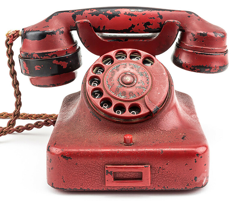 シーメンス(Siemens)製のベークライトのダイヤル式黒電話を深紅に塗ったもので、本体にはヒトラーの名前やかぎ十字、第三帝国のワシの紋章などが刻み込まれている。1945年、ナチス政権が連合国軍に敗北した後にドイツ・ベルリン(Berlin)にあるヒトラーの地下壕(ごう)から発見された。