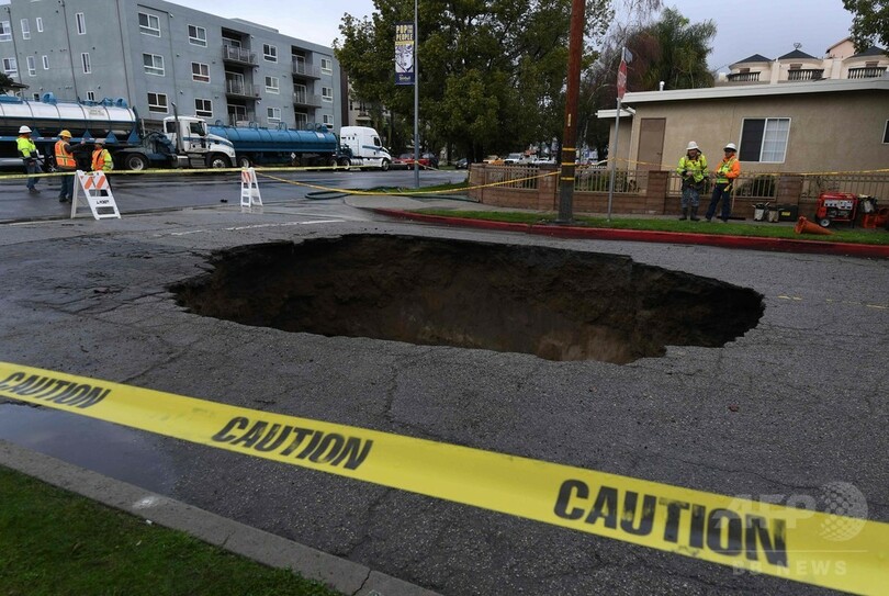 一方地元テレビ局KABCは、道路に開いた大きな穴に乗用車が落ち、運転していた女性が負傷したと報道した。負傷した女性は消防局員に救助されるまで穴にはまったままだったという。