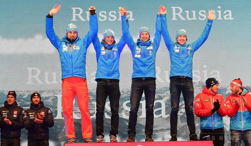 ロシアチームが金メダルを獲得した男子4×7.5キロメートルリレーの表彰式で、本来ならロシア国歌が流れるはずだったが、1990年から2000年まで使われていた古い国歌が流れてしまった。