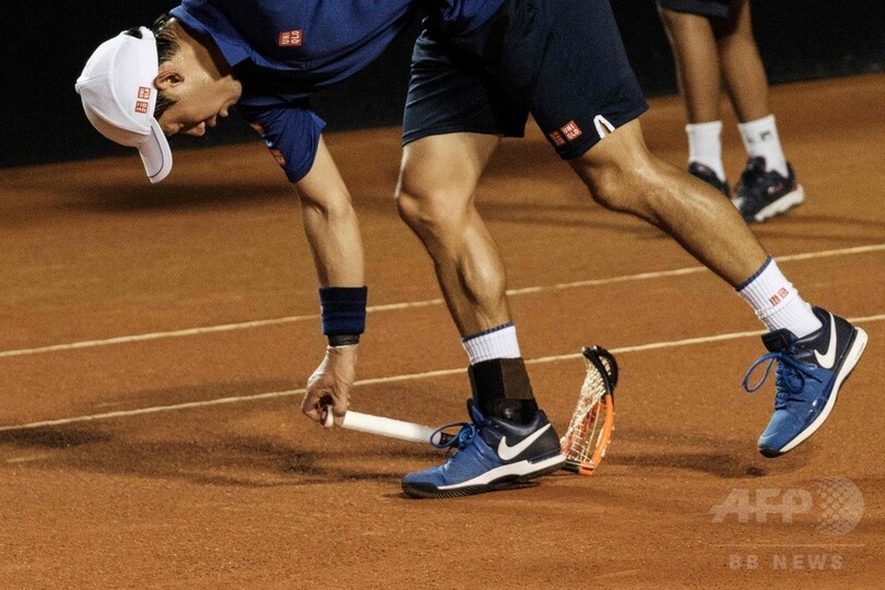 錦織がリオOP初戦敗退、ラケットをたたき壊す場面も