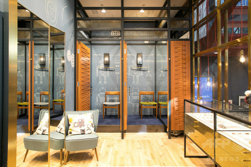 「テッドベーカー」は1988 年にグラスゴーの小さなシャツ専門店としてスタート。ブリティッシュユーモアを取り入れたクオリティの高いデザインで知られ、今や世界中に300 以上の店舗を展開中のブランドだ。今回オープンした表参道店は、メンズ、レディース、アクセサリーを取り揃えたアジア最大の旗艦店。「Ted’s Tokyo Machine(テッドの東京マシン)」をコンセプトにデザインされ、コンピューターのサーキットボードやレトロなロボットなどが装飾された空間で、タイムスリップしたかのようなショッピング体験が楽しめる。