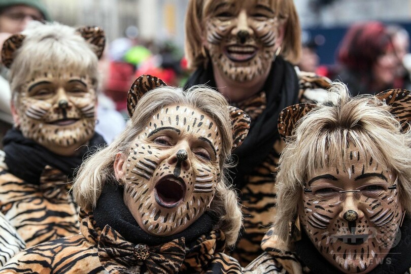 【2月24日 AFP】ドイツ西部ケルン(Cologne)やデュッセルドルフ(Duesseldorf)などで23日、「女性たちのカーニバル(Women's Carnival、ドイツ名Weiberfastnacht)が開幕し、仮装した人たちや民族衣装をまとった音楽隊らが春の訪れを祝った。(c)AFP