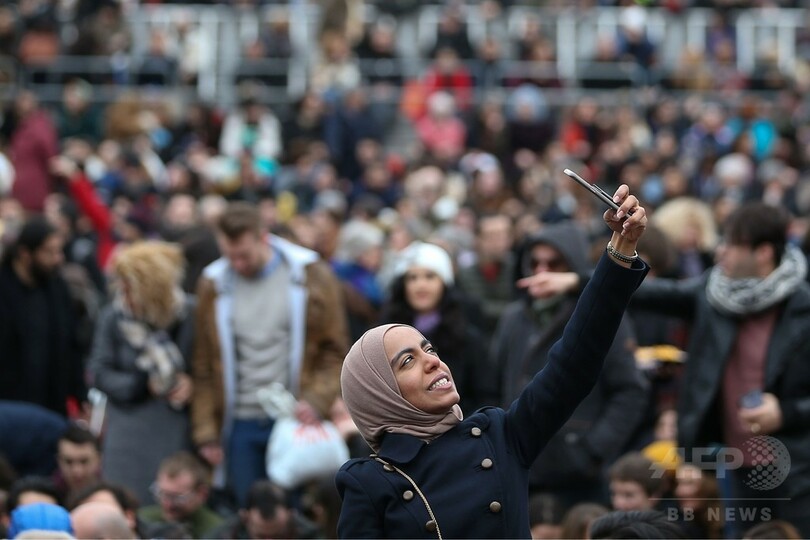 トラファルガー広場でAFPの取材に応じたロンドンのサディク・カーン(Sadiq Khan)市長は、米国がイランなどイスラム諸国7か国出身者に対する入国禁止令を出したことについて「恥ずべきことだ」とした上で、「こういうときだからこそ私は人々を歓迎したい」「コミュニティーの分断を図ろうとする動きがあるときに、私は人々を団結させたい」と述べた。