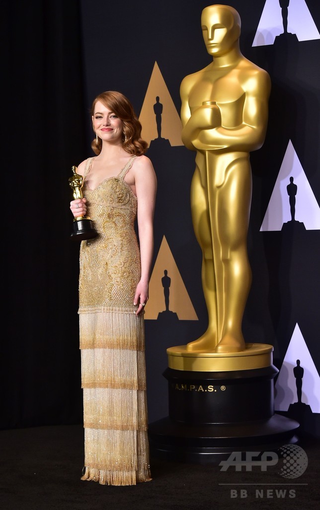 【2月27日 AFP】米ハリウッド(Hollywood)で26日に開催された第89回アカデミー賞(Academy Awards)授賞式で、見事オスカー像を手にした受賞者たちが、プレスルームで喜びの表情を見せた。(c)AFP