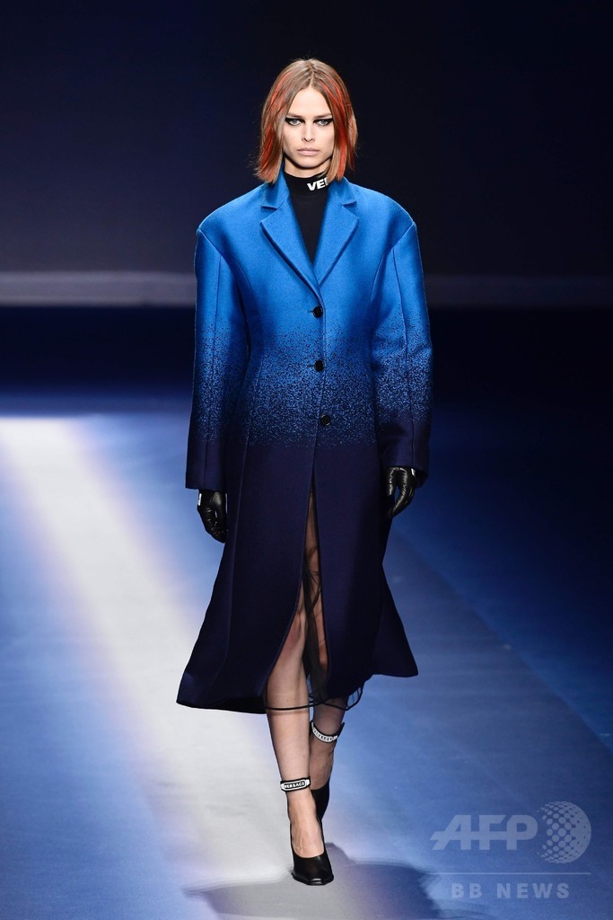 23日には、ドナテッラ・ヴェルサーチ(Donatella Versace)が手がける「ヴェルサーチ(VERSACE)」が新作を発表した。(c)AFP