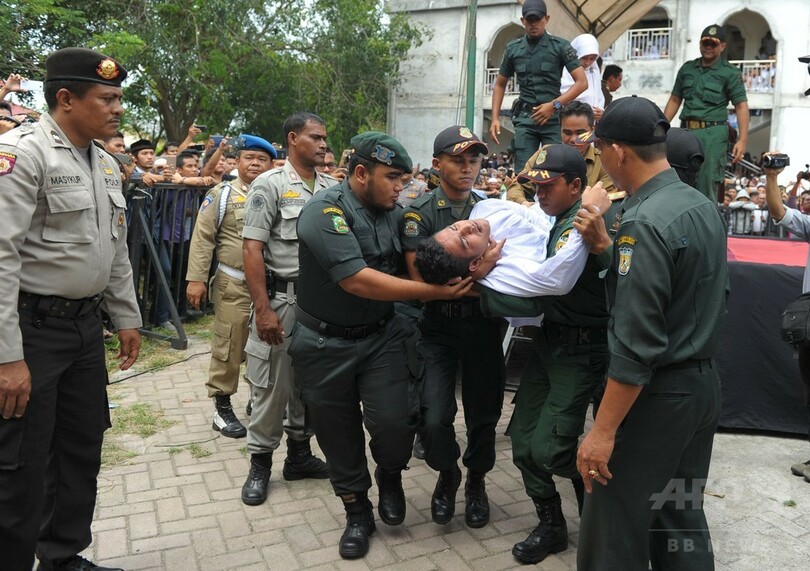 今回の公開むち打ちの刑は、州都バンダアチェ(Banda Aceh)のモスク(礼拝所)前で行われた。集まった見物人らを前に、宗教当局者によって8回むちで打たれた男性は、意識を失って倒れ、いったん壇上から下ろされた。
