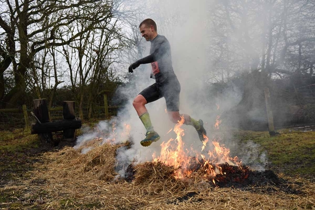 もう一つ今年のコースで良かったのは、火の中を走り抜けるコーナーだった。これは干し草の俵に火をつけ、競技者が火の上を走っていく間、ボランティアが絶えず俵を足していく。