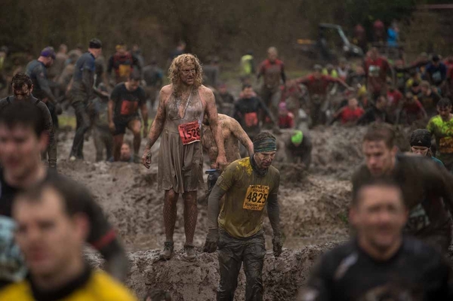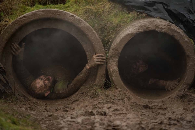私のお気に入りの障害の一つは、参加者たちが四つんばいになって抜けなければいけない巨大なトンネルだ。中は真っ暗で、上には馬などを逃がさないためによく使う電気柵が帯状に張られている。要するに参加者は顔を泥につけ、上を走る電気に若干感電しながら、真っ暗闇の中をはって抜ける。そして彼らは、この体験をするために金を払っているのだ。毎年参加する人さえいる。