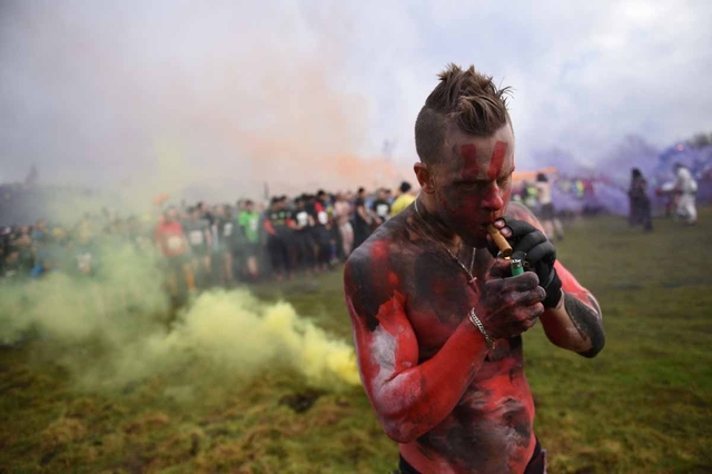 参加者たちが位置について、狂気のスタートとなる。煙が上がる中、とにかく大勢が一斉にスタートを切る場面は奇想天外な写真になる。