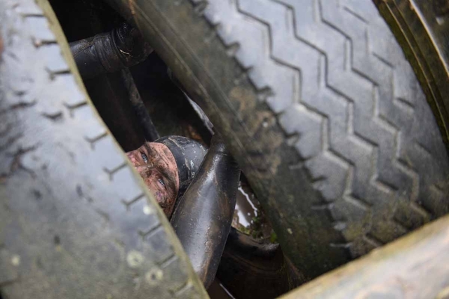 たぶん私自身もひどい格好になっていたに違いない。ウェリントン・ブーツと防水ズボンをはいていたが、下半身は完全に泥だらけだった。それに雨が降っていたため、カメラを2台、首からぶら下げていた上半身は完全にずぶぬれだった。