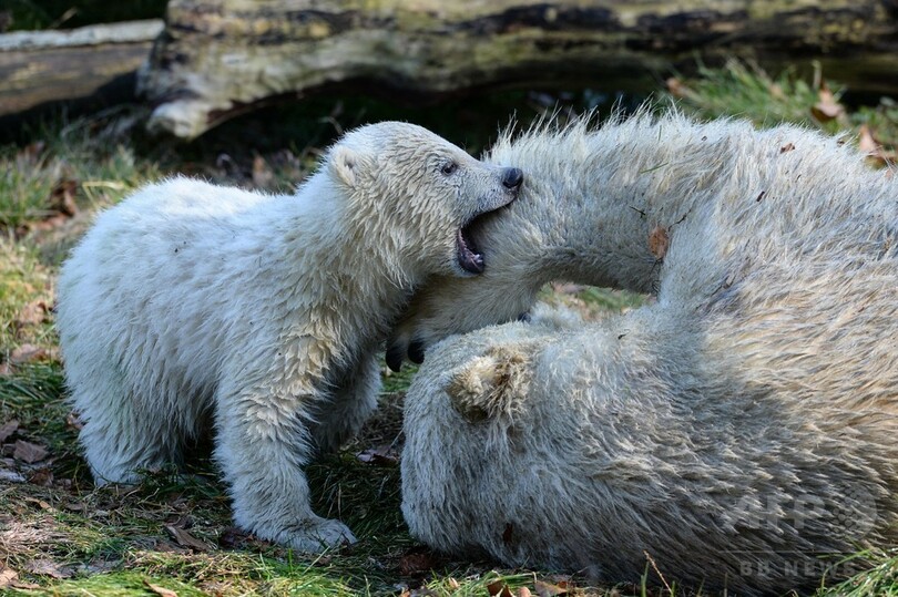【2月28日 AFP】フランス東部ミュルーズ(Mulhouse)のミュルーズ動物園(Mulhouse zoo)で27日、昨年11月に生まれたホッキョクグマの子ども「ナニュク(Nanuq)」が母グマと一緒に泳いだり、じゃれ合ったりする可愛らしい姿をみせた。(c)AFP
