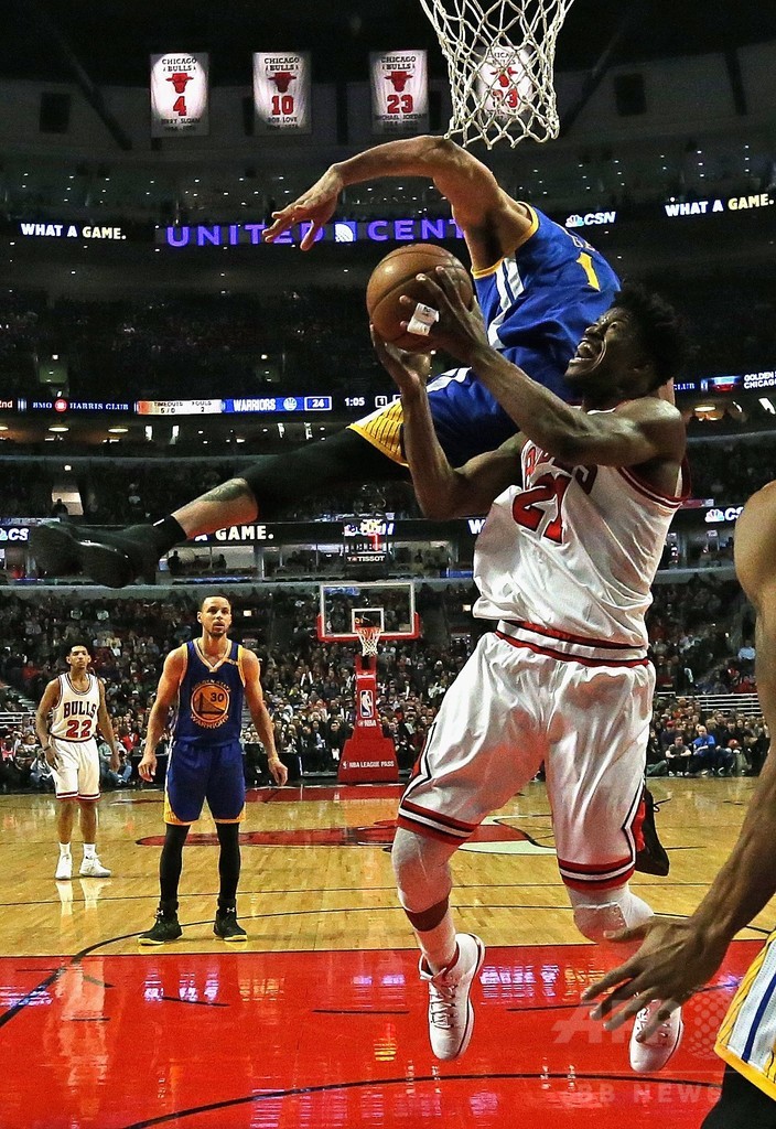 ブルズは22得点の活躍をみせたジミー・バトラー(Jimmy Butler)を筆頭に、計4人の選手が二けた得点を記録。対するウォリアーズは、今季最低得点に終わり、レギュラーシーズンでは2015年4月以来となる連敗を喫した。