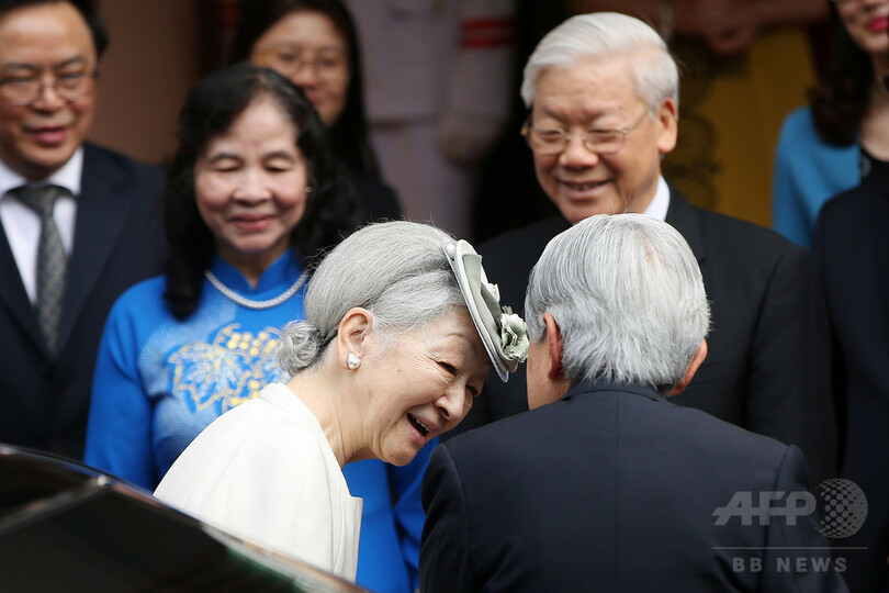 【3月4日 AFP】ベトナムを公式訪問中の天皇、皇后両陛下は3日、ハノイ(Hanoi)で同国の最高指導者グエン・フー・チョン(Nguyen Phu Trong)共産党書記長と会見した後、同国2か所目の訪問先となるグエン朝の都が置かれていた古都フエ(Hue)に到着された。