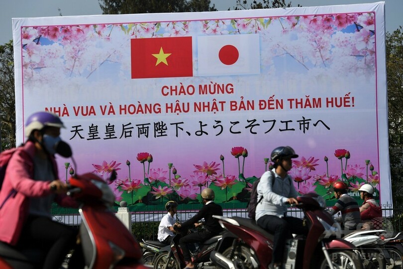 【3月4日 AFP】ベトナムを公式訪問中の天皇、皇后両陛下は3日、ハノイ(Hanoi)で同国の最高指導者グエン・フー・チョン(Nguyen Phu Trong)共産党書記長と会見した後、同国2か所目の訪問先となるグエン朝の都が置かれていた古都フエ(Hue)に到着された。
