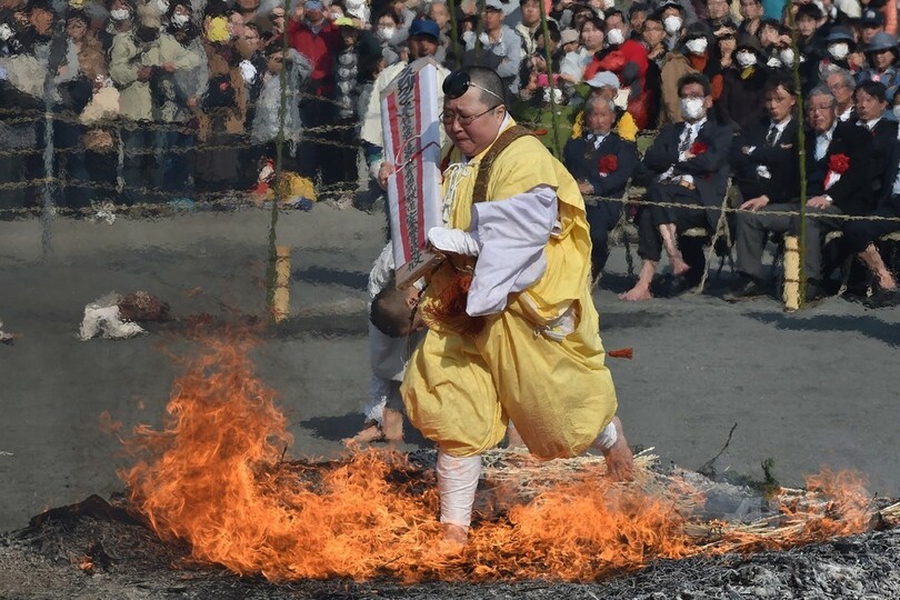 ニュース ライフ 火渡りで無病息災願う、埼玉の「長瀞火祭り」 2017年3月6日 8:52 発信地:埼玉 [ アジア・オセアニア 埼玉 ] このニュースをシェア 画像作成中 この写真にはショッキングな表現、または18歳以上の年齢制限の対象となる内容が含まれます。ご覧になる場合にはご了承の上、クリックしてください。 この画像を見る ❯ {{photo.ind}}/11 画像作成中 {{photo.ind}}/11 画像作成中 ! 【3月6日 AFP】埼玉県の長瀞(Nagatoro)町不動寺(Fudoji)で5日、春の訪れを告げる信仰行事「長瀞火祭り」が開催された。「心身の浄化」と「無病息災」を願い、大勢の修験者や一般参拝客らが裸足で火の上を歩いた。 (c)AFP ライフ 一覧へ> メディア・報道関係・法人の方向け 写真・動画 購入のお問合せ>