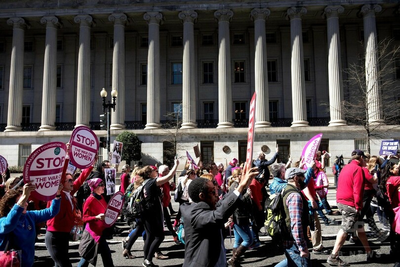 一方、首都ワシントン(Washington D.C.)やニューヨーク(New York)では同日、トランプ大統領の女性に対する政策に抗議する集会が開かれた。