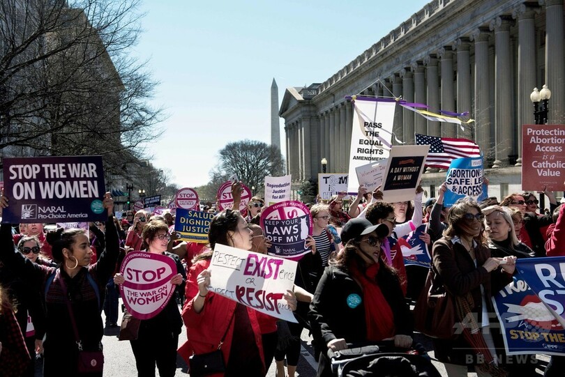 一方、首都ワシントン(Washington D.C.)やニューヨーク(New York)では同日、トランプ大統領の女性に対する政策に抗議する集会が開かれた。