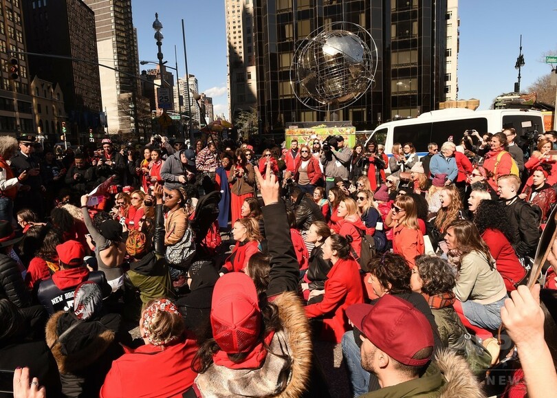 参加者の大半が女性で、多くは赤い衣服を着用していた。ニューヨークの集会は、トランプ・タワー(Trump Tower)に近いセントラルパーク(Central Park)の端で行われ、2000人近くが参加した。