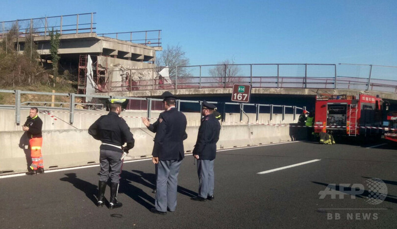 【3月10日 AFP】イタリア東海岸アンコナ(Ancona)近郊で9日、高速道路の上に架けられた橋が崩落する事故があり、下敷きになった車に乗っていた夫婦が死亡した。警察が発表した。同国では4か月前にも同様の崩落事故が起きており、事故原因をめぐる議論が巻き起こっている。