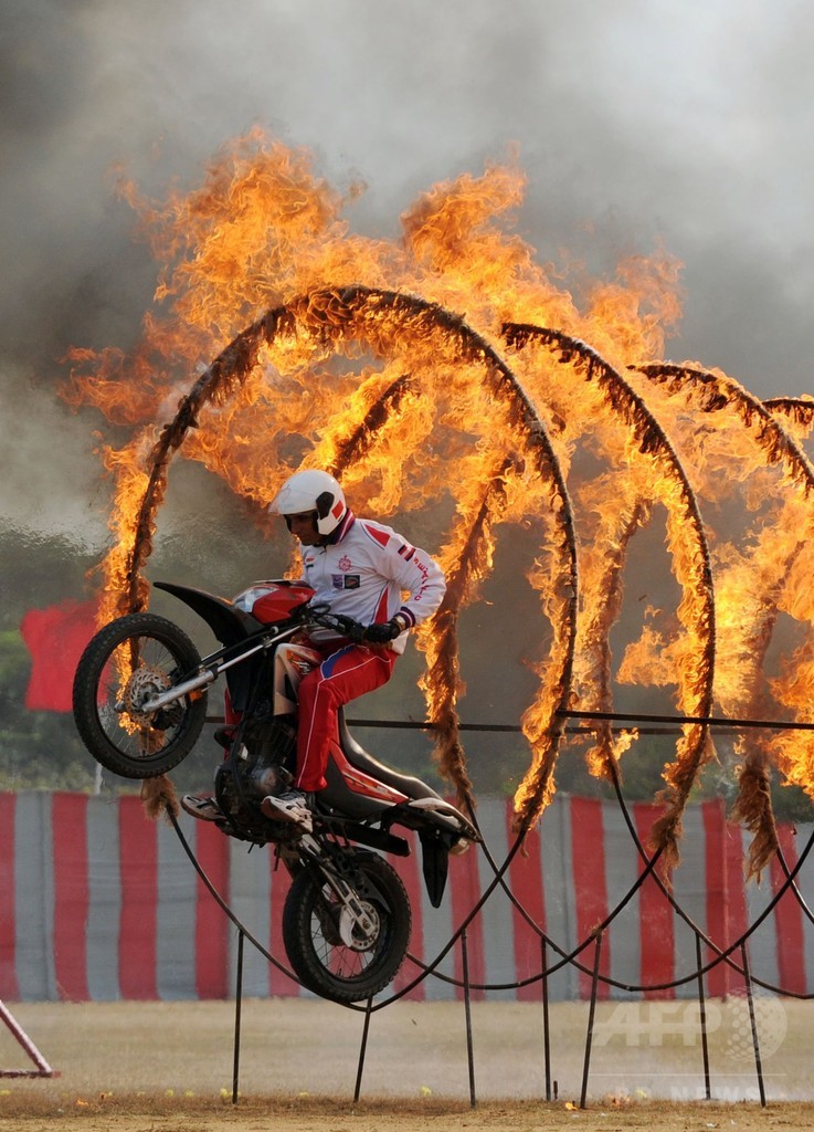 ニュース ライフ バイクの上で人間ピラミッド、インド兵が曲芸披露 2017年3月11日 15:01 発信地:チェンナイ/インド [ アジア・オセアニア インド ] このニュースをシェア ‹ › ❮ 2/4 ❯ インド南部チェンナイの士官訓練アカデミーで、バイクで火の輪をくぐる軍の兵士(2017年3月10日撮影)。(c)AFP/ARUN SANKAR 画像作成中 ! 【3月11日 AFP】インド南部チェンナイ(Chennai)にある士官訓練アカデミーで10日、同国陸軍のオートバイ部隊に所属する兵士らが、日ごろの訓練の成果を披露した。(c)AFP ライフ 一覧へ> メディア・報道関係・法人の方向け 写真・動画 購入のお問合せ>
