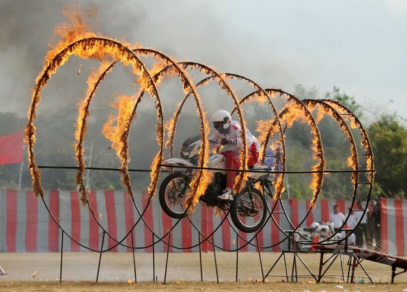 ニュース ライフ バイクの上で人間ピラミッド、インド兵が曲芸披露 2017年3月11日 15:01 発信地:チェンナイ/インド [ アジア・オセアニア インド ] このニュースをシェア ‹ › ❮ 4/4 ❯ インド南部チェンナイの士官訓練アカデミーで、バイクで火の輪をくぐる軍の兵士(2017年3月10日撮影)。(c)AFP/ARUN SANKAR 画像作成中 ! 【3月11日 AFP】インド南部チェンナイ(Chennai)にある士官訓練アカデミーで10日、同国陸軍のオートバイ部隊に所属する兵士らが、日ごろの訓練の成果を披露した。(c)AFP ライフ 一覧へ> メディア・報道関係・法人の方向け 写真・動画 購入のお問合せ>