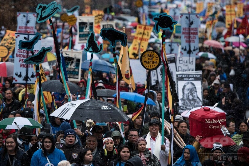米先住民がホワイトハウスへデモ行進、石油パイプライン建設に抗議