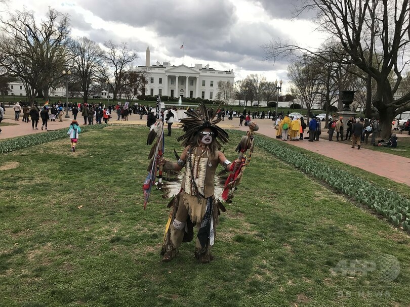 米先住民がホワイトハウスへデモ行進、石油パイプライン建設に抗議