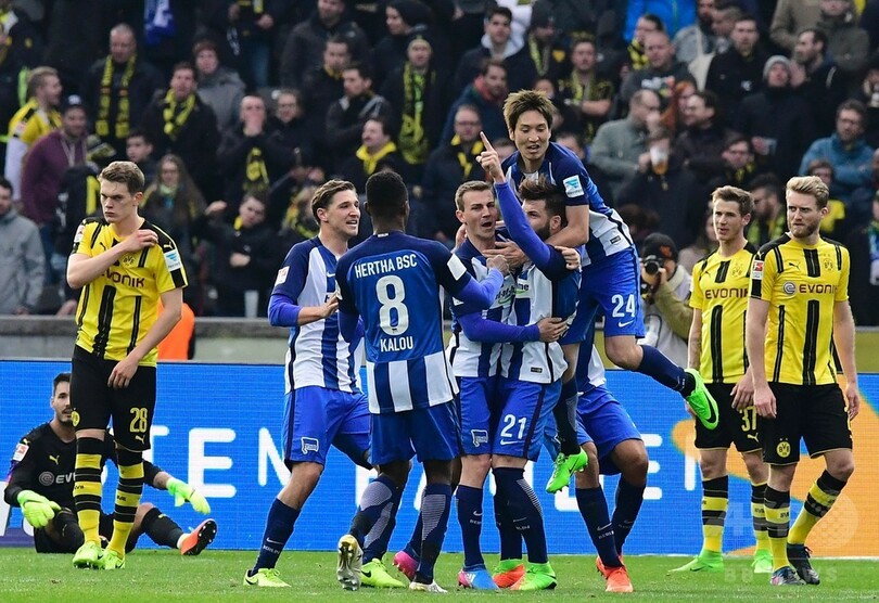 【3月12日 AFP】16-17ドイツ・ブンデスリーガ1部は11日、第24節の試合が行われ、ローテーションを採用したボルシア・ドルトムント(Borussia Dortmund)は、ヘルタ・ベルリン(Hertha Berlin)に1-2で敗れ、欧州チャンピオンズリーグ(UEFA Champions League 2016-17)で準々決勝に進出した勢いを維持することはできなかった。