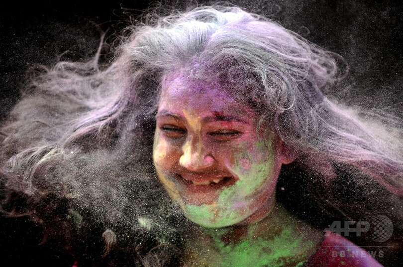 【3月13日 AFP】インド各地で12日、ヒンズー教の祭り「ホーリー(Holi)」が行われた。「色祭り(Festival of Colours)」とも呼ばれるホーリーは、冬の終わりと春の訪れを祝い、カラフルな色粉をかけ合うにぎやかな祭り。(c)AFP