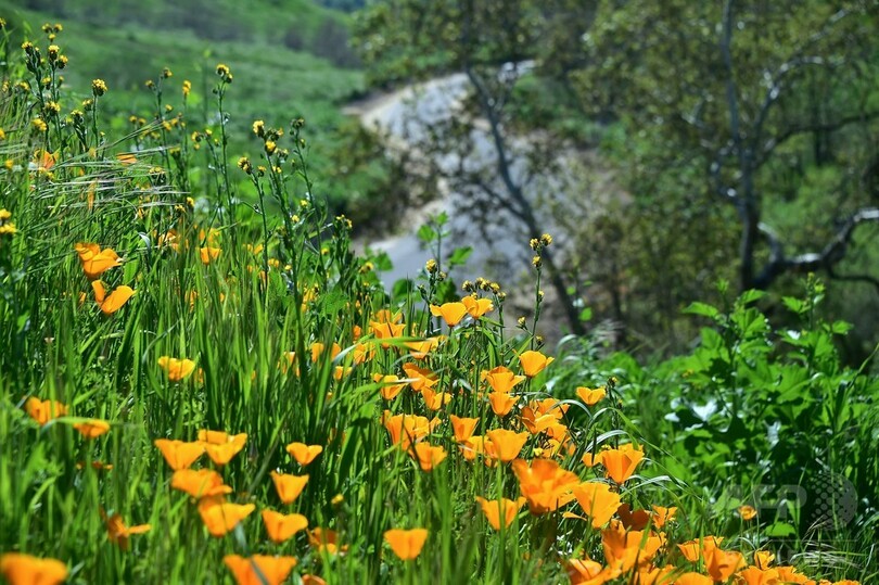 【3月14日 AFP】カリフォルニア(California)州南部の広い地域で花開いた野花。カリフォルニア州は、過去5年以上にわたって干ばつに見舞われているが、今冬には豪雨を記録していた。チノヒルズ(Chino Hills)州立公園でも、カリフォルニアポピー(ハナビシソウ、学名:Eschscholzia californica)が開花した。