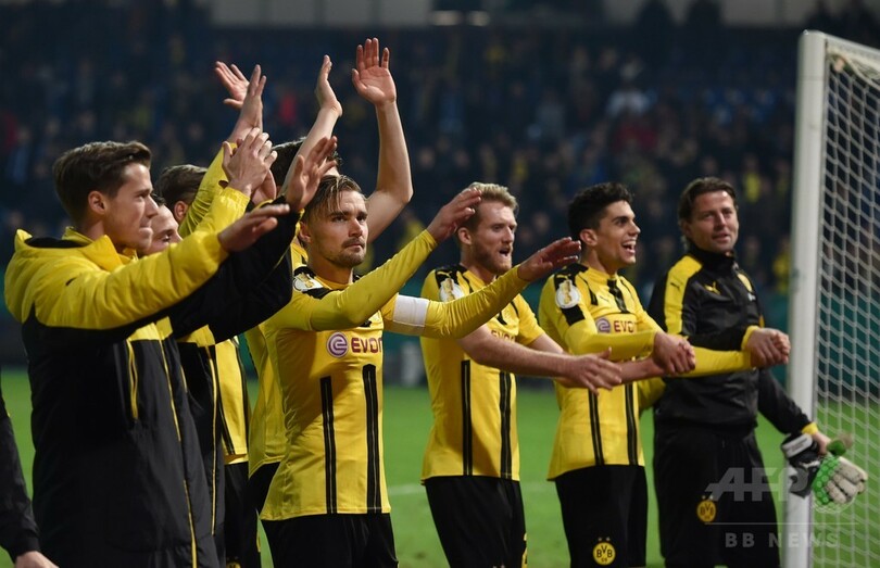 【3月15日 AFP】サッカードイツカップ(German Cup 2016-17)は14日、延期となっていた準々決勝の1試合が行われ、ボルシア・ドルトムント(Borussia Dortmund)は3-0で3部シュポルトフロインデ・ロッテ(Sportfreunde Lotte)に快勝し、準決勝に進出した。