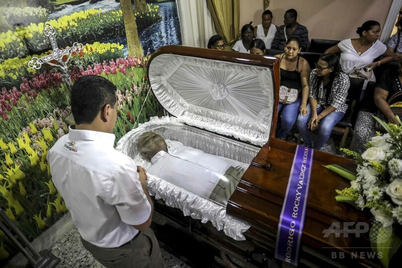 「本日、われわれは『ロッキー(バルデス氏の愛称)』バルデスにお別れを言う。彼はリングでの勇気によって、この国に栄光と勝利をもたらした」 (c)AFP