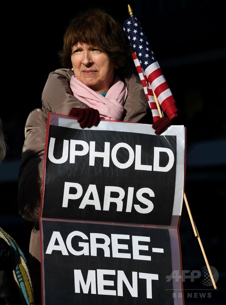 【3月16日 AFP】都内の米国大使館の近くで16日、レックス・ティラーソン(Rex Tillerson)米国務長官の来日に合わせて日本在住の米国人らがデモを行い、地球温暖化対策の新しい国際枠組み「パリ協定(Paris Agreement)」に対する米国の責任を再確認するよう訴えた。