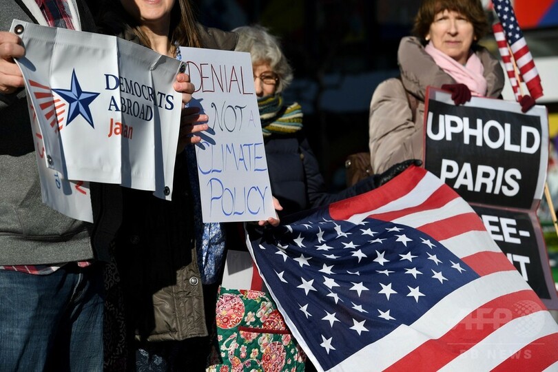 【3月16日 AFP】都内の米国大使館の近くで16日、レックス・ティラーソン(Rex Tillerson)米国務長官の来日に合わせて日本在住の米国人らがデモを行い、地球温暖化対策の新しい国際枠組み「パリ協定(Paris Agreement)」に対する米国の責任を再確認するよう訴えた。